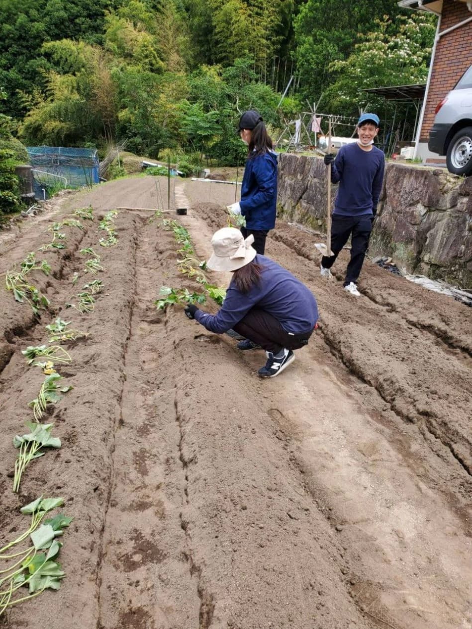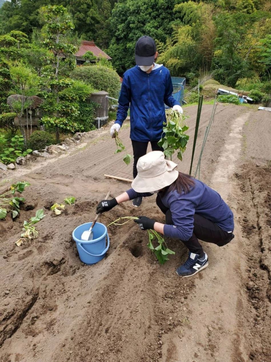 畝を作り、サツマイモを植えました。