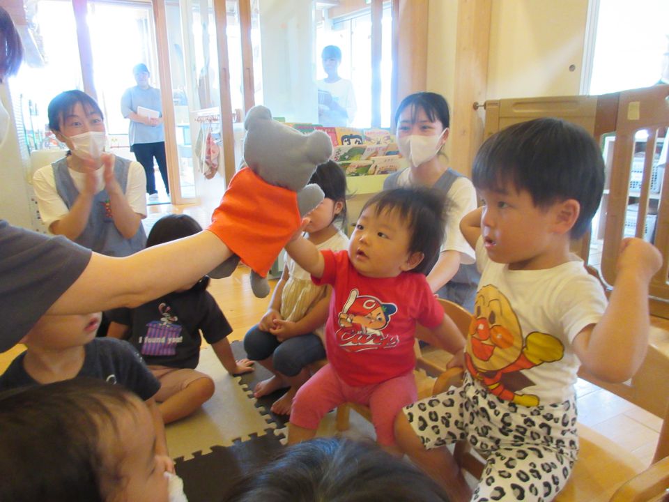 今日はこぐまちゃんと一緒にみんなでふれあいあそびを楽しもうね~