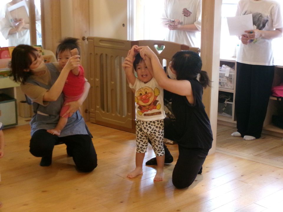 朝の歌をうたったり、名前を呼ばれて元気よくこぐまちゃんとハイタッチできたね!