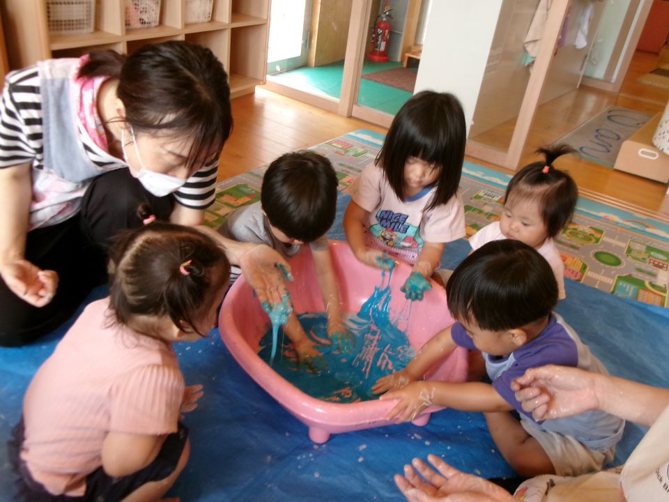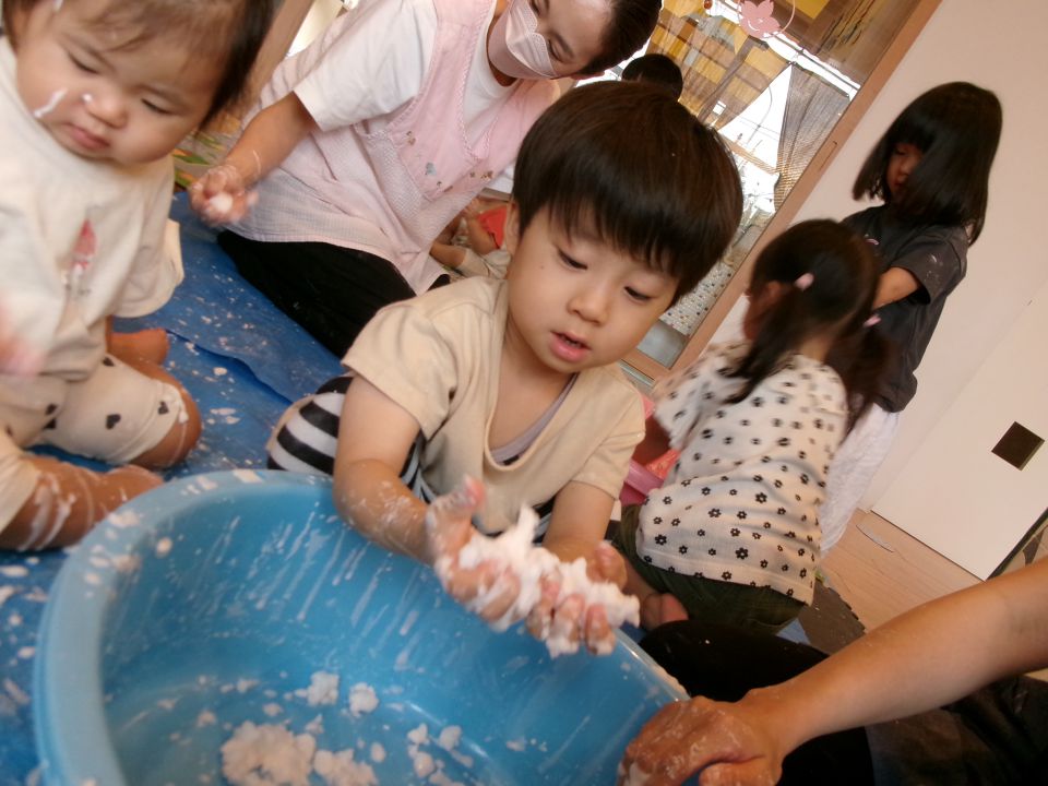 今日はみんなで感触あそびをしたよ!