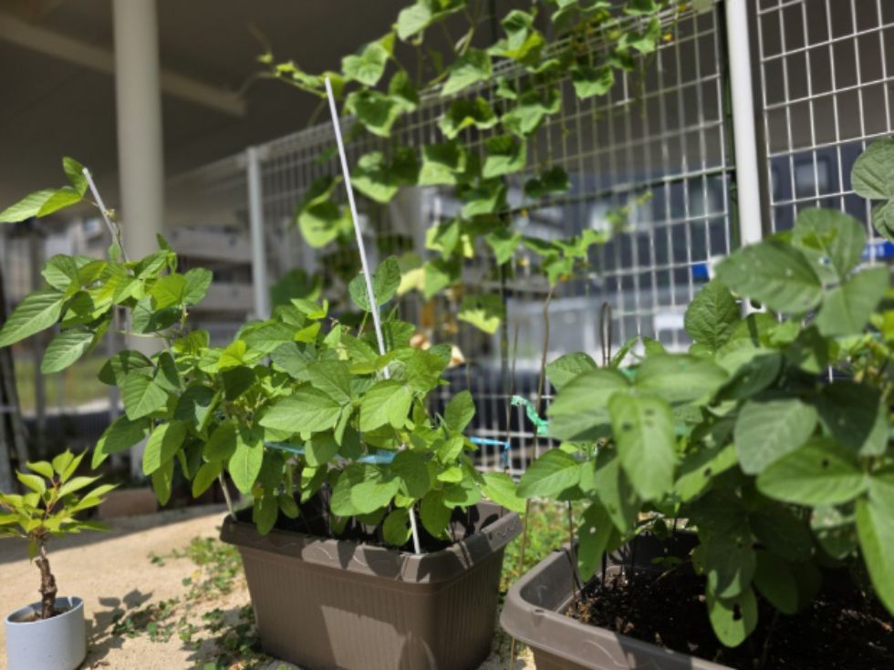 レタス・さやエンドウ・枝豆・オクラ・ナスビいろんな野菜が出来てます!