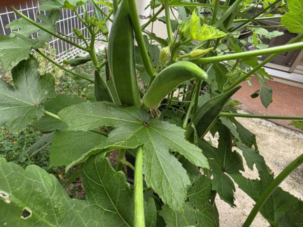 オクラを大きく大きく太らせて、オクラスタンプにして、ぺったんぺったん。早くあそびたいなあ。