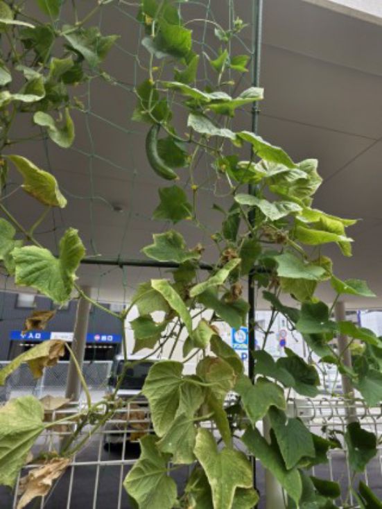 きゅうりなんてこんなに高く、おてんとうさまの近くまで伸びてます。