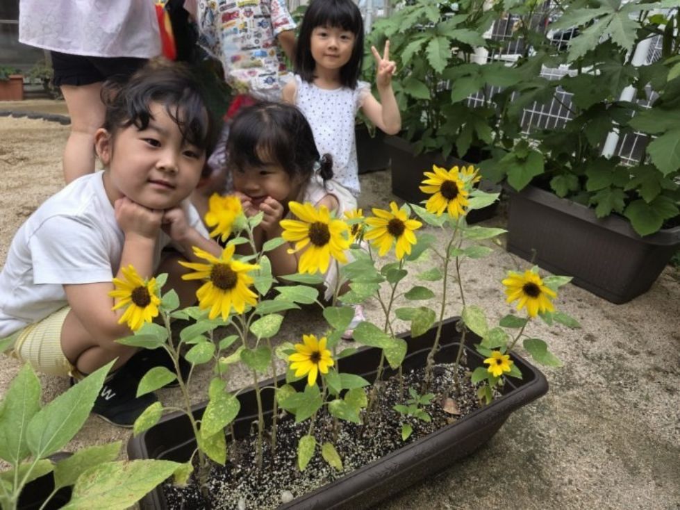 ひまわりに負けない子どもたちの笑顔です。