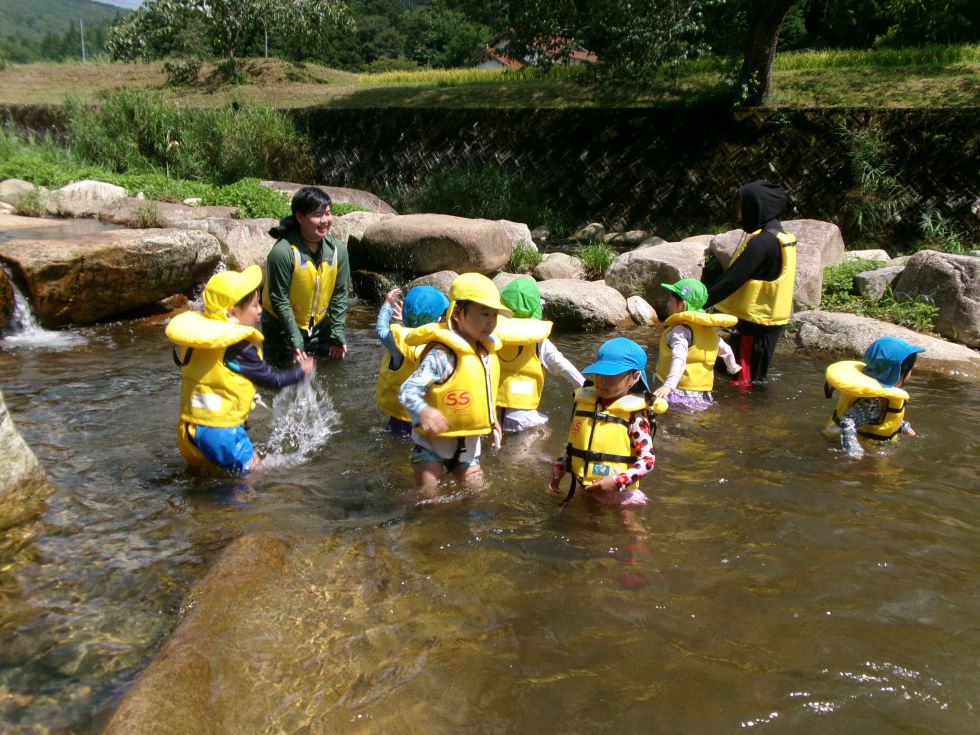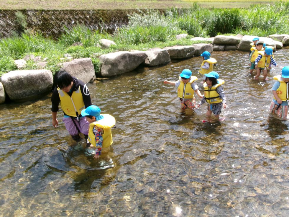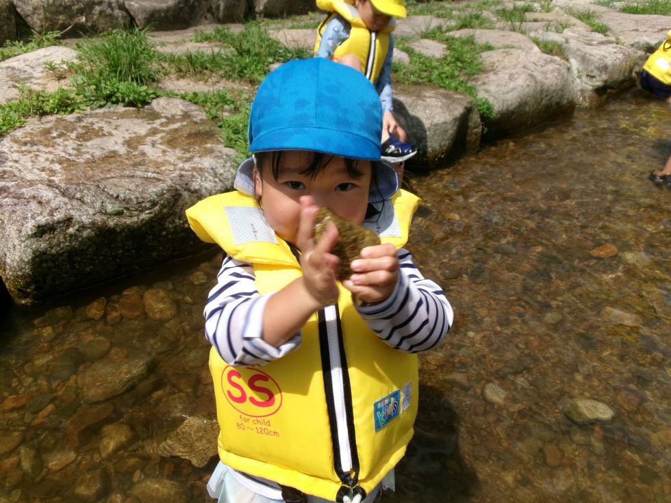 川遊びに出発!冷たくて気持ちいいねぇ。何かいるか探してみよう。