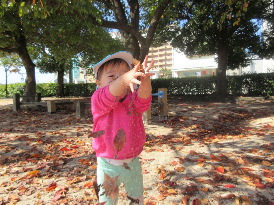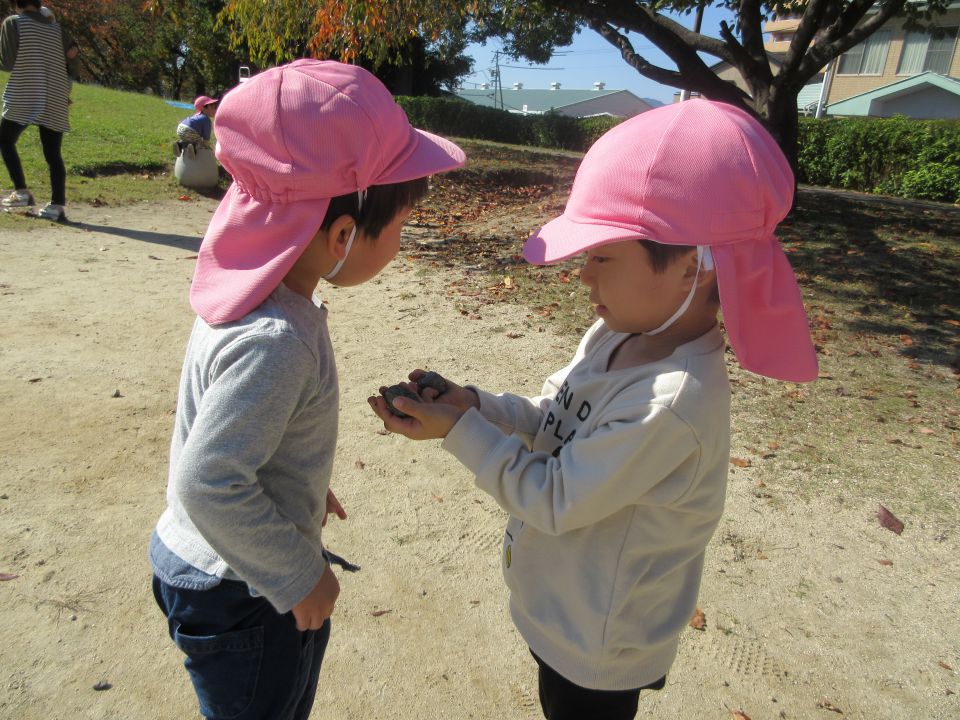 子ども達は手いっぱいになるまで集め秋見つけを楽しみました!