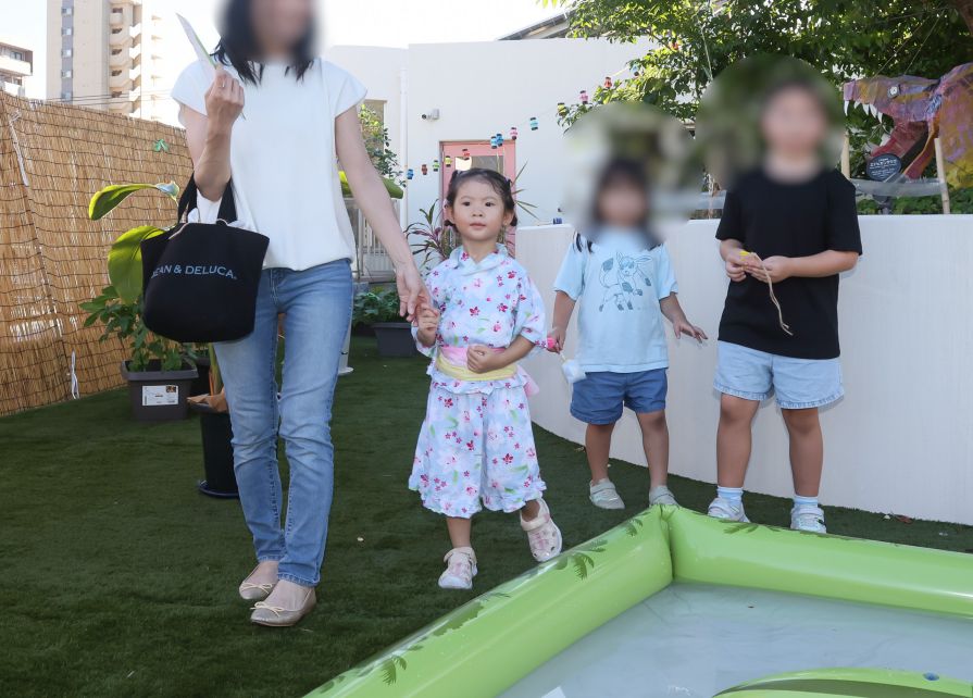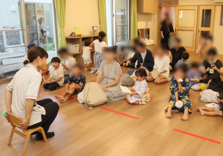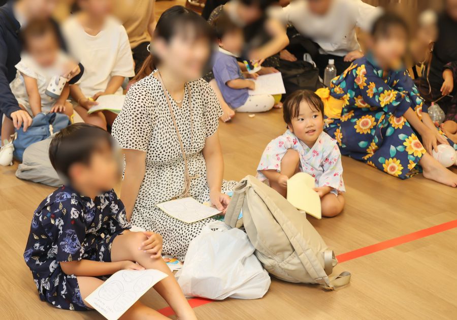 先生たちが絵本や昔話など楽しいお話を用意して待っていました。