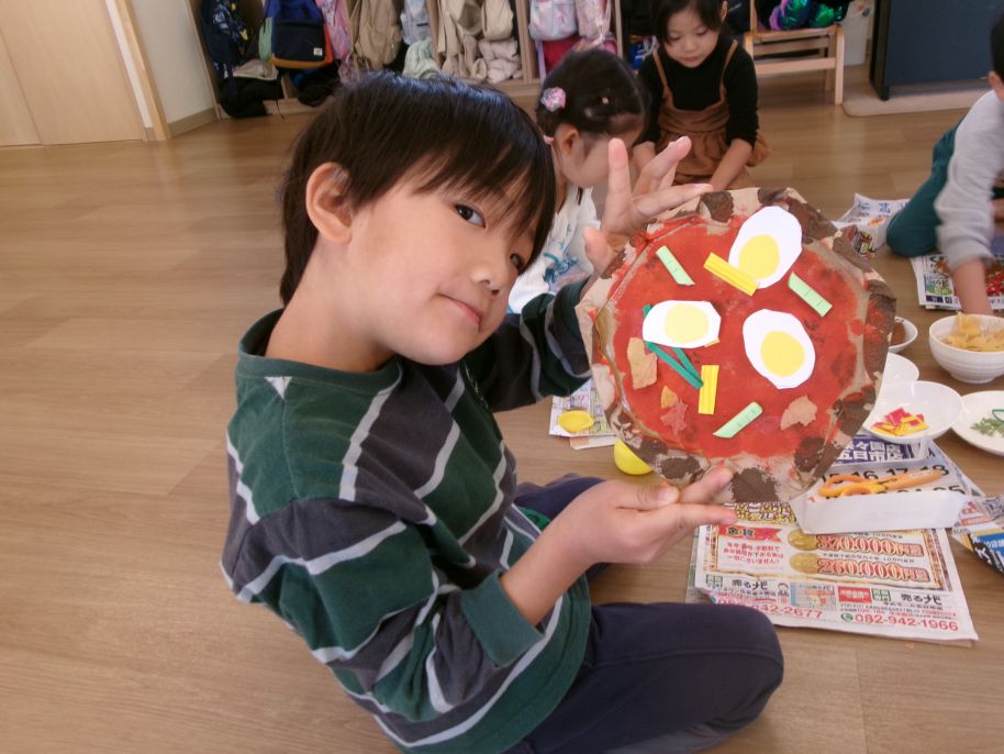 生地を作ったあと、たまごやピーマン、チーズ、どんぐりなどの