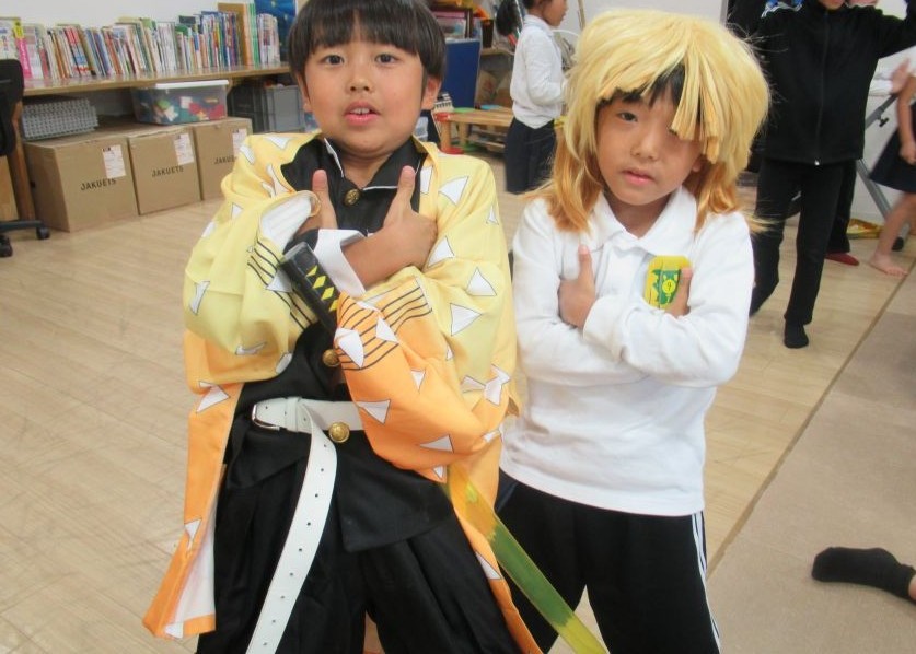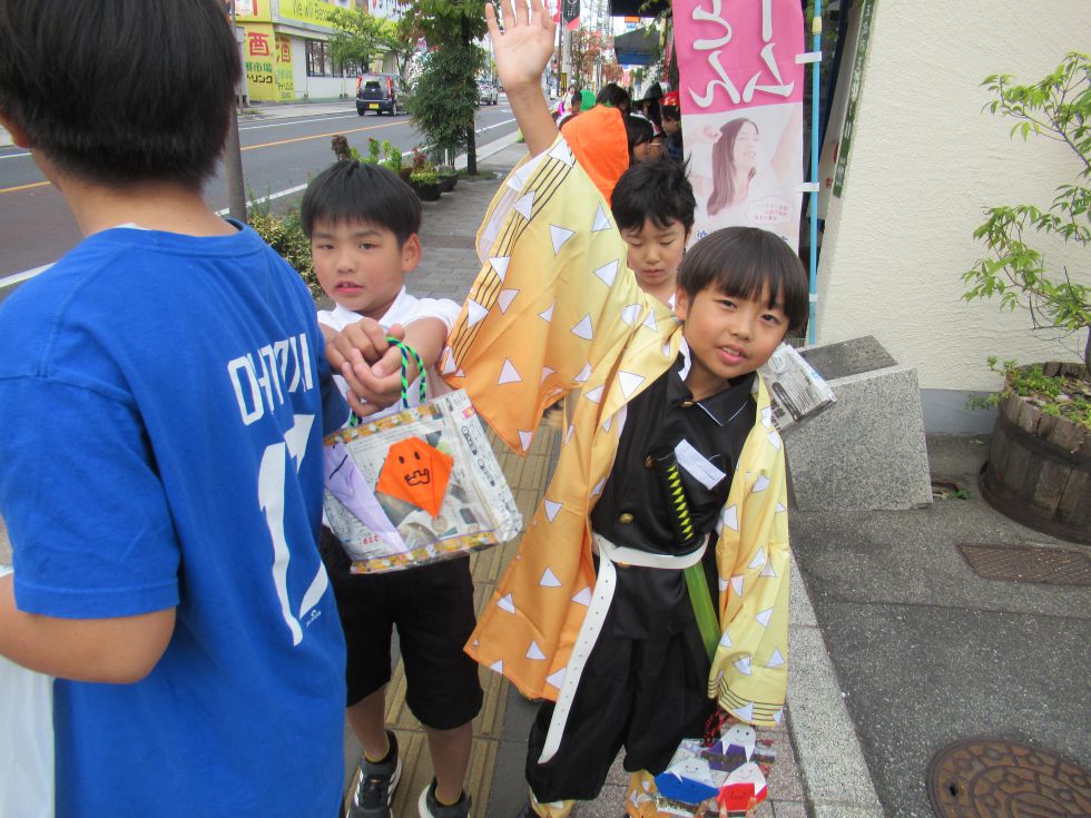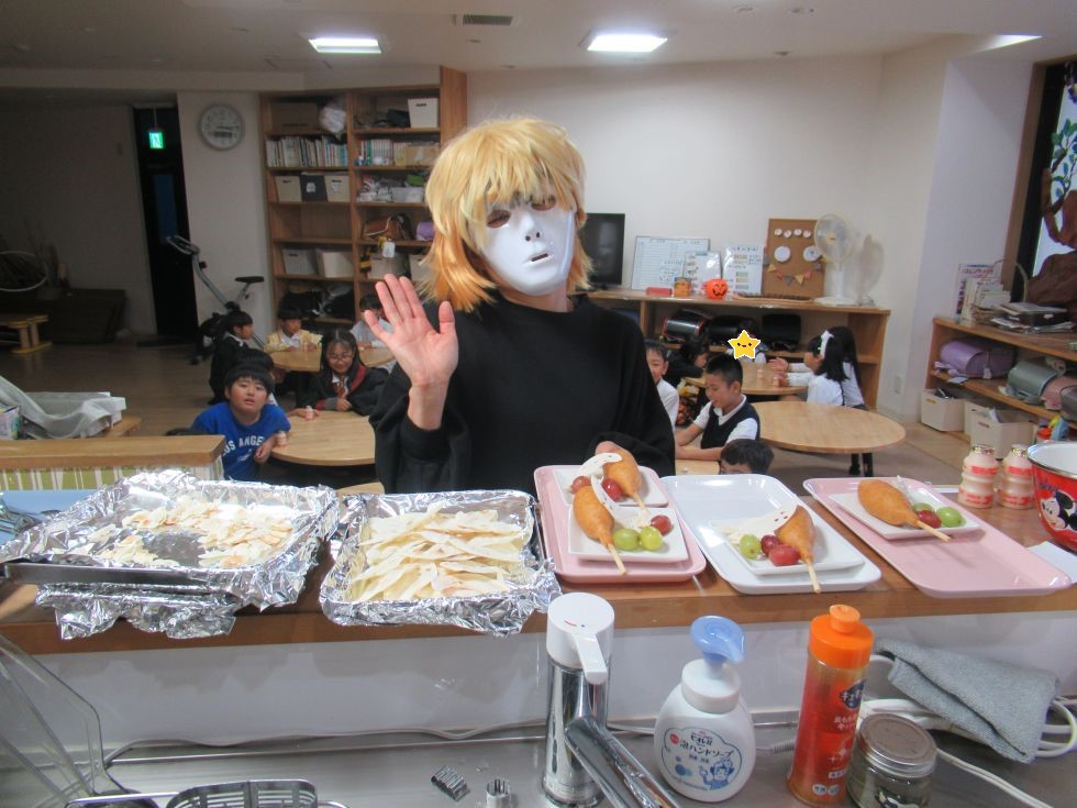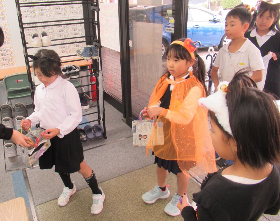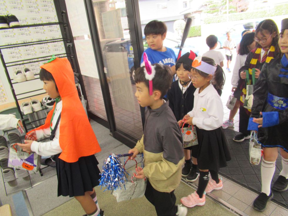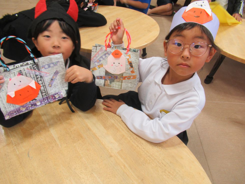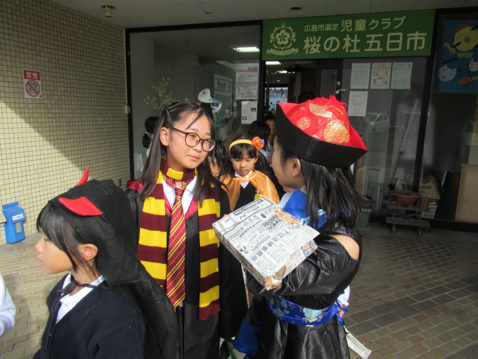 ハロウィンの仮装をして、ハロウィンバックを持って