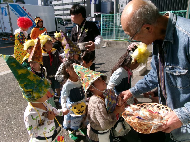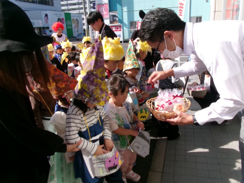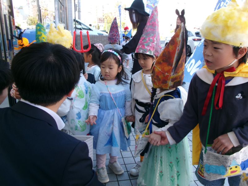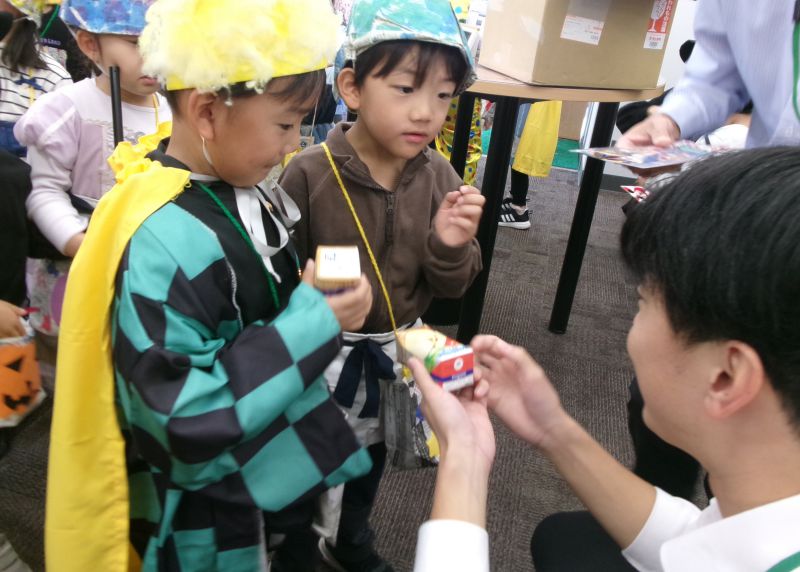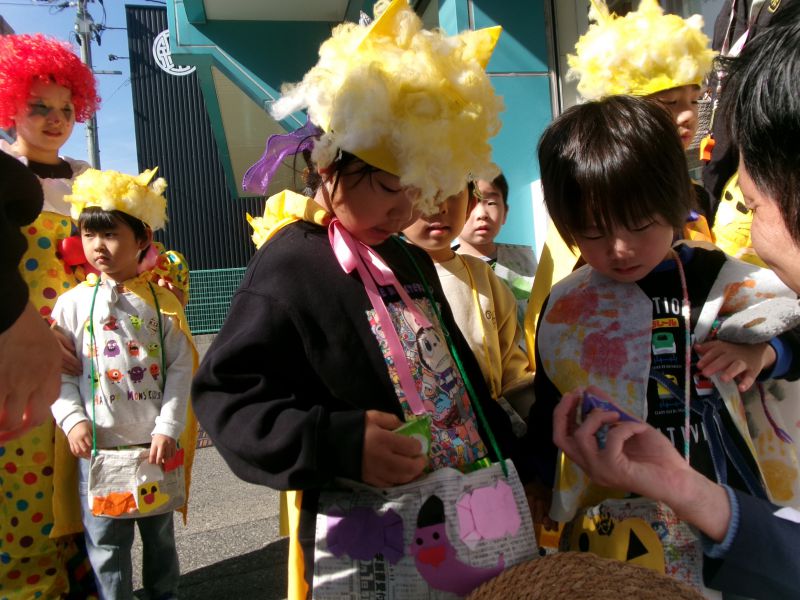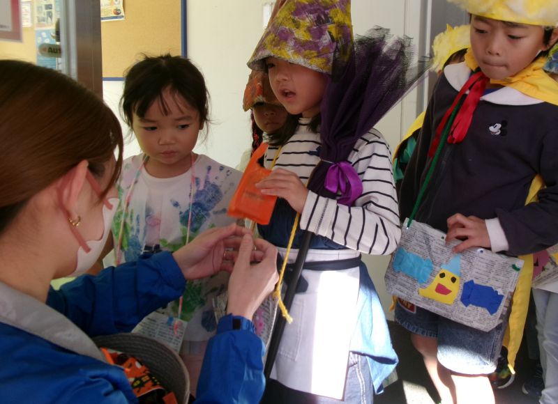 ハロウィンバックがお菓子でいっぱいになり、嬉しくって笑顔が溢れる子どもたち・・・♡