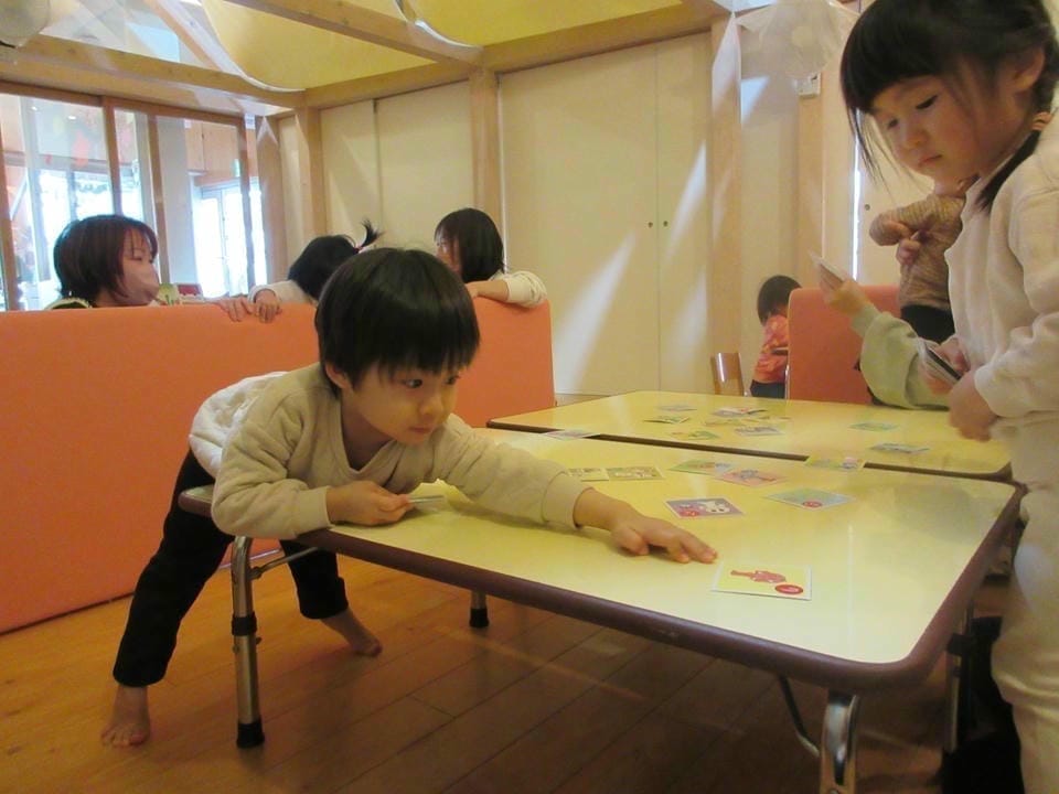 真剣にかるたを探す子どもたち!