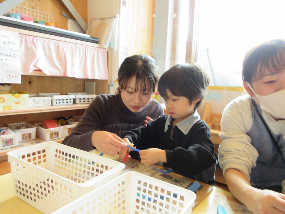 はさみやのりを使って、チョキチョキ、ペタペタ・・